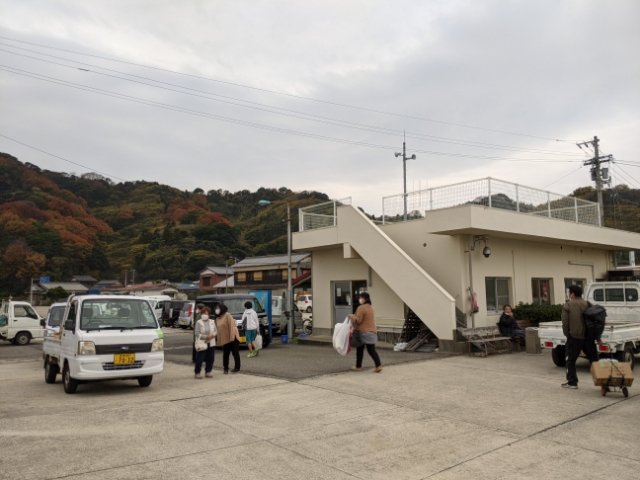 怒和島からフェリーで神浦港に到着。これまでの島に比べて、圧倒的に人が多いです!