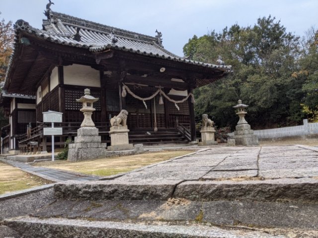 粟井地区にある桑名神社。高台に立っているため、境内へは石段を登っていきます。