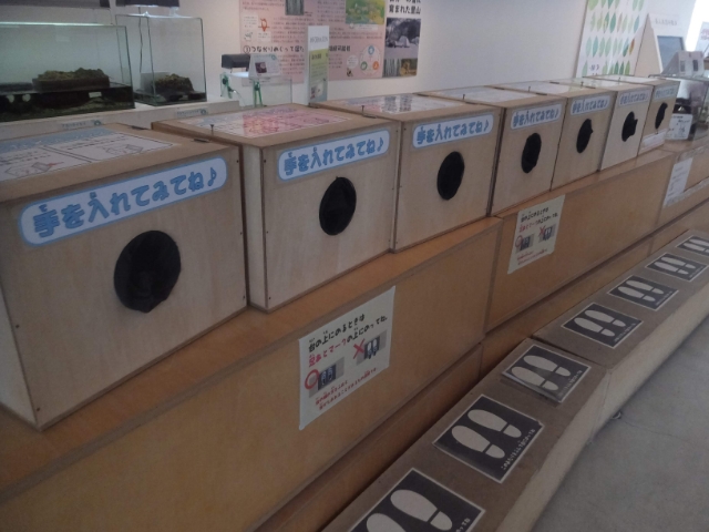 「森の学校」の名前の通り、内部は自然博物館。里山の自然や風習について学ぶことができる展示がたくさん。いずれもわかりやすく、ちょっとした体感型の仕掛けもあります。