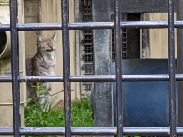 空中通路を備えた立体的な檻に入ったアムールトラ。ネコ科の中でも最大級の大きさですが、ひょいっと2階へ飛び乗る様子はやっぱりネコ。お客さんの頭上をすらっと歩いていきます。こんなに元気に跳ね回るトラは初めて見ました!
