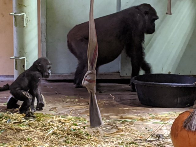 ゴリラファミリーのドタバタ家族劇も見どころの1つ。子供ゴリラの「キンタロウ」は見るからにやんちゃ坊主。2018年12月生まれなので、まだ1歳3ヶ月。そして、あちこち走り回るキンタロウを母親の「ゲンキ」が追いかける。