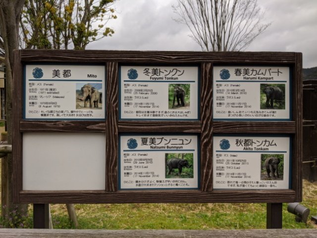 最高齢の美都を中心に春美カムパート、夏美ブンニュン、秋都トンカム、冬美トンクンと四季を冠した4頭の若いゾウ。まるで大日如来を中心とした四天王のようです。