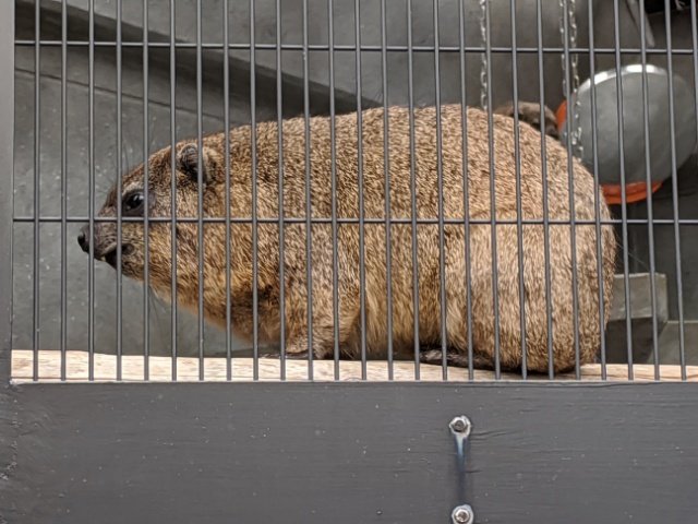 ネズミやウサギみたいな生き物。骨格はサイ、下顎の臼歯はカバ、消化器官はウマにそれぞれ似ているらしい。耳と尻尾はモルモットに似ているが、イワダヌキ科に分類されており、ゾウやマナティと同じ祖先を持つらしい。書いててわけがわからなくなってきました。多くの動物の要素がつまっていますが、見た目はころころとしたかわいい動物です。