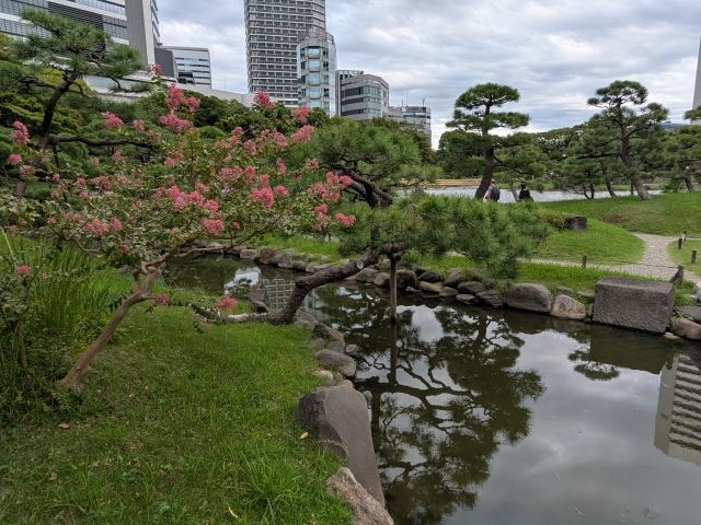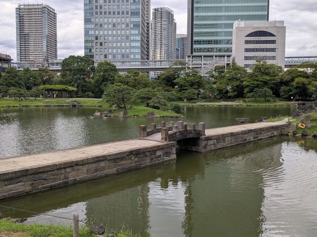 浜松町から竹芝桟橋へ至る道にあるため、周辺はとってもにぎやか。ただし、園内まで入る人は少なく、日曜でしたが混雑皆無でとっても快適でした。