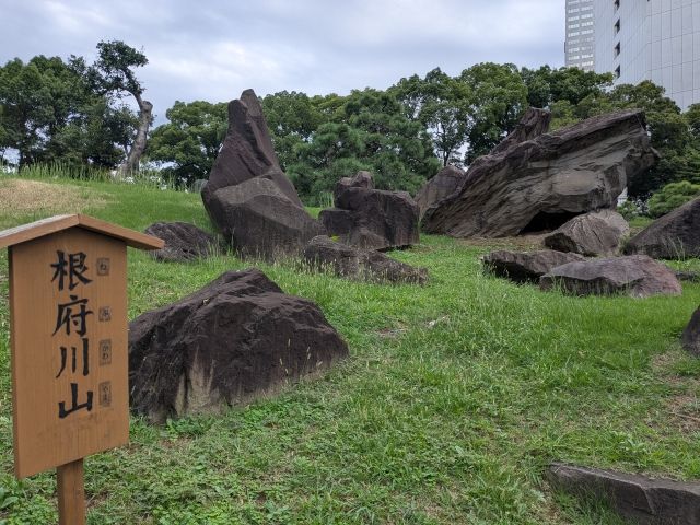 園内最高峰である築山、大山。標高は5m程度ですが、周辺に高い樹木が植えられていないため、眺めは抜群。とっても気持ち良いです。