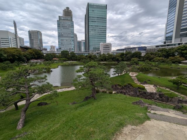 まず目に入るのは園内の中央に位置する大きな池、大泉水。周辺には高いビルが立ち並んでいますが、ここだけぽっかり空いています。都会のオアシスという表現がぴったりハマる庭園です。