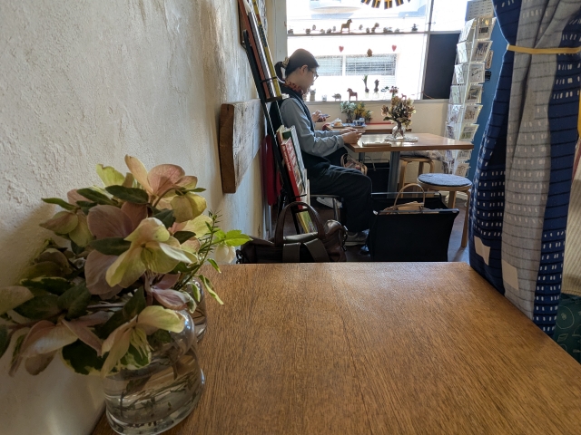 テイクアウトだけでなく、イートインも可能。2名のテーブル席が3つと数は少ないですが、このあたりでは貴重な店内で過ごせるスポット。土曜日の12:00頃に訪ねたところ、ちょうど1席空きがありました!