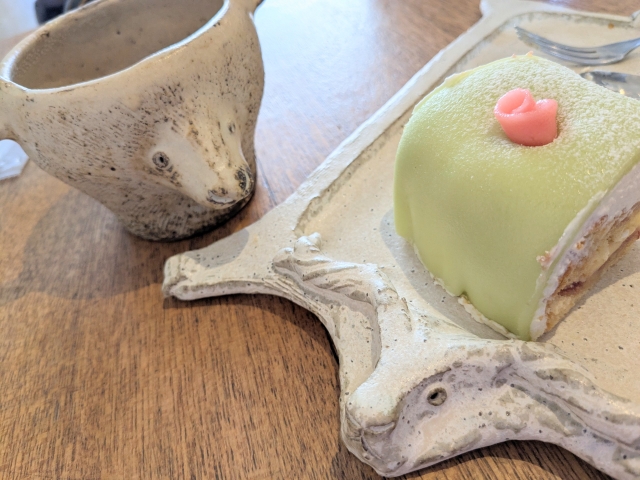 イートインのケーキセットは、好きな器を選ぶことができます。器にもこだわりを感じる素敵なサービスでございます。