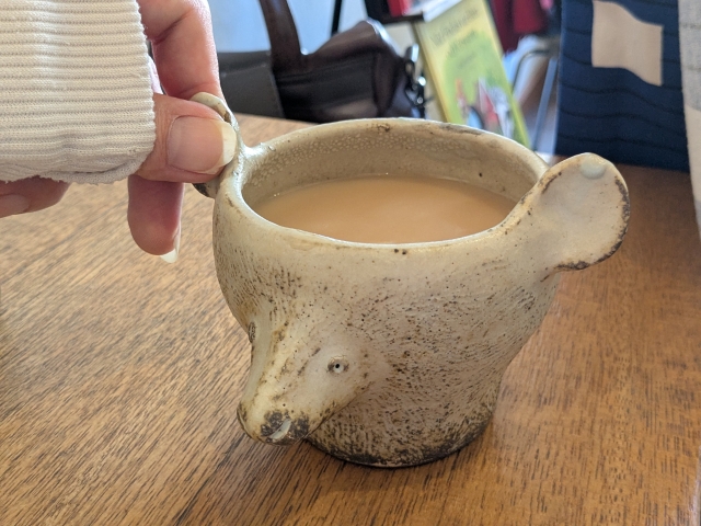 こちらがくまのカップ。くまが描かれているわけではなく、耳と鼻が生えたカップそのものがくまの頭になっているという攻めたデザイン。独特すぎるフォルムですが、耳部分が意外と持ちやすいです。