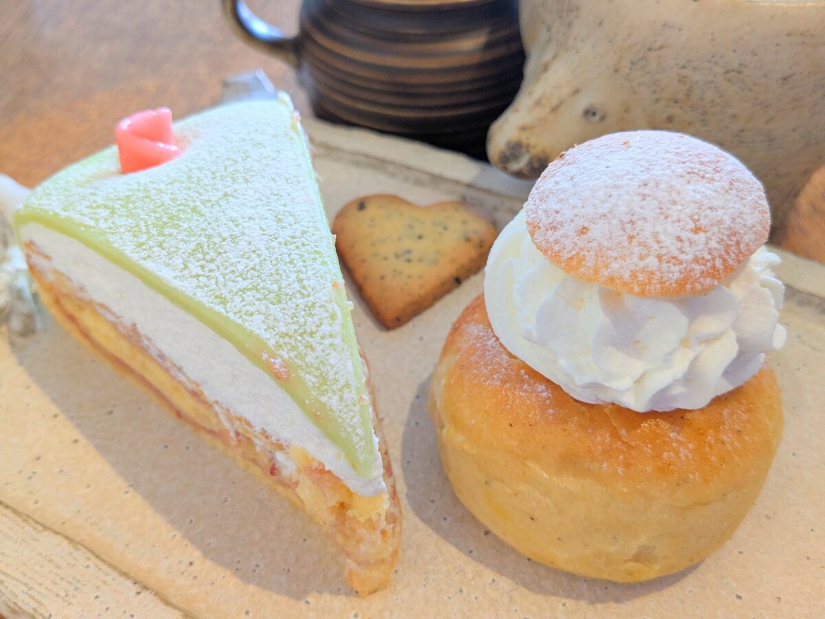 パンそのものは甘くないので、ケーキよりもさっぱり食べられます。ただし、パンなのでフォークで食べるのは難易度高め。結局手に持ってかじっちゃいました。