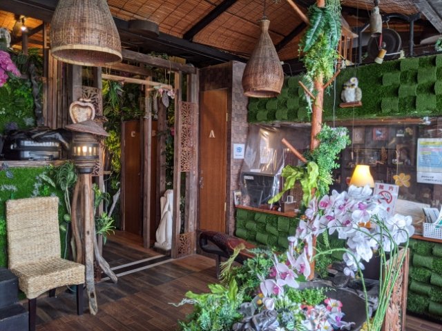 ロハスヴィラは「アジアンリゾートゲストハウス」をテーマとしており、インテリアはアジアンな雰囲気が全開。