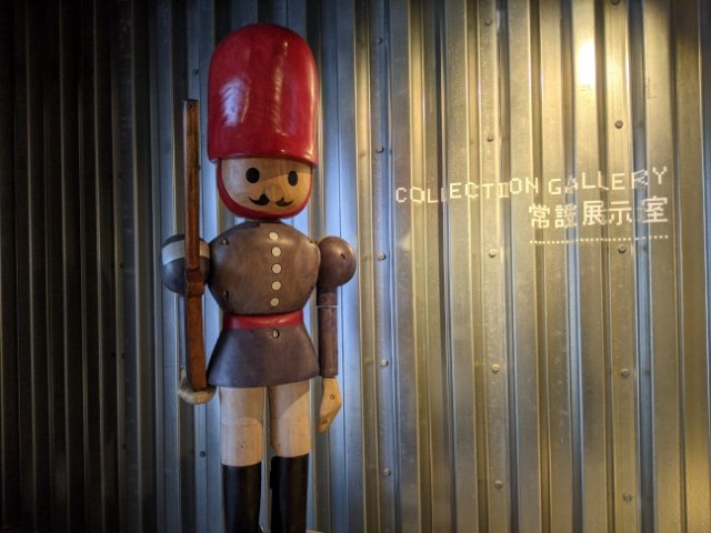 展示室の入り口に立っている衛兵さんは「Toy Soldier」by KOSUGE1-16。人が近づくとウイーンと立ち上がりますが、離れるとしゃがんでしまいます。人が見ていないと怠けてしまうらしいです。
