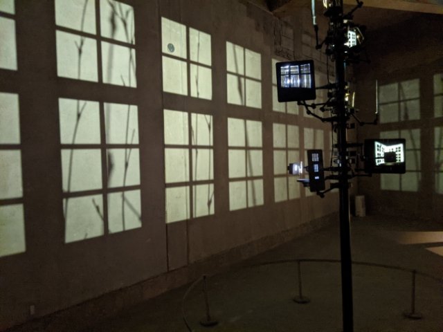 地下には「Lost Windows」by クワクボリョウタが展示されています。暗い部屋の中、窓にはノスタルジックな風景が映し出されます。