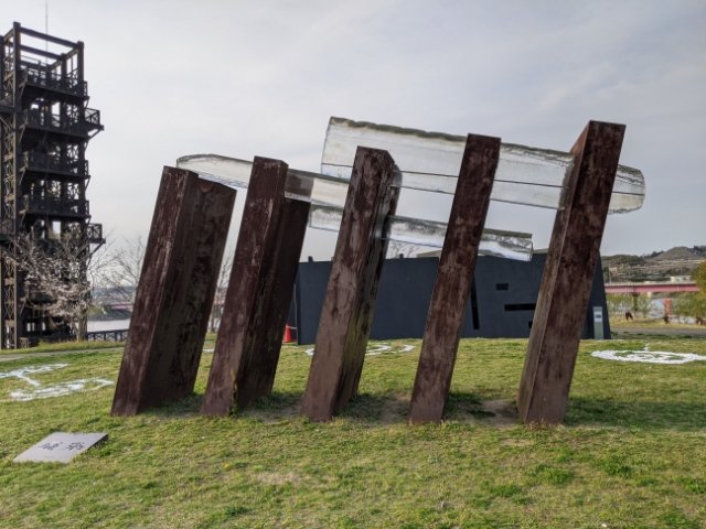 こちらの鉄骨で組まれたものはアート作品ではなく展望塔。階段が設置されており、自由に登ることができます。