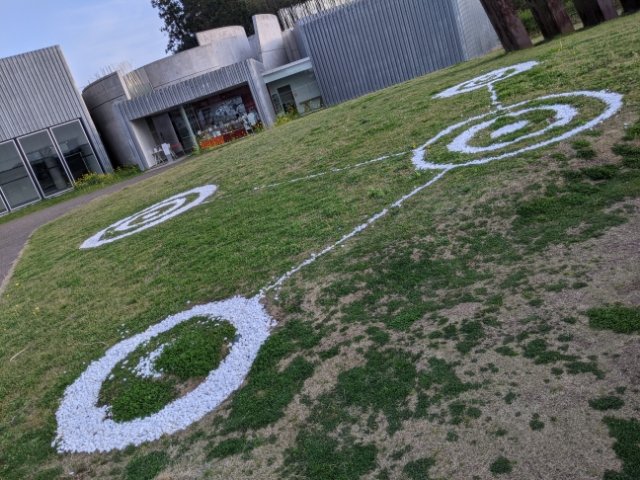 白い石がミステリーサークルのように並べられています。特に作品名などはありませんが、もしかして、飛来とセットで光が飛んでくる目印だったのでしょうか。