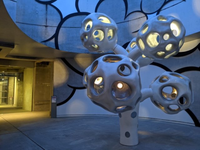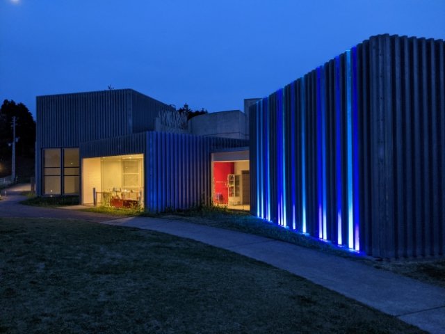 日没とともに館内の一部作品もライトアップ。昼とはまた違った印象に変化していきます。