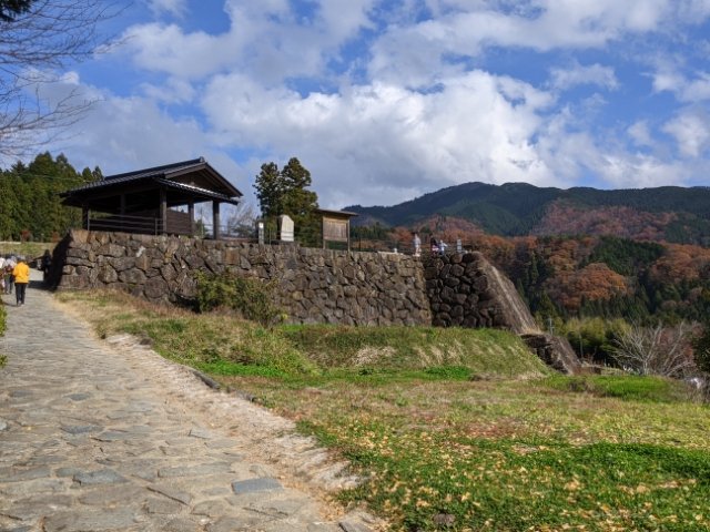 高札場を越えて進むと、石垣の上に作られた展望広場が見えてきます。
