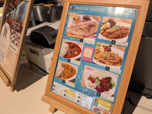 展示室を抜けるとショップとカフェエリアに。別の入り口もあるため、展示室を通らずに利用することもできます。「ナシゴレン」「ミーゴレン」「カレー」など、エスニック感あふれるラインナップ。