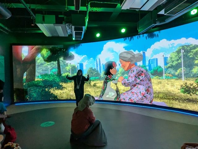展示の最後にあるシアターでは、未来を描いたアニメーションが上映されています。テクノロジーで便利な世界になりつつも、衣装や農業、織り物など、伝統を生かした様子も。伝統と革新が融合した素敵な未来を見ることができます。