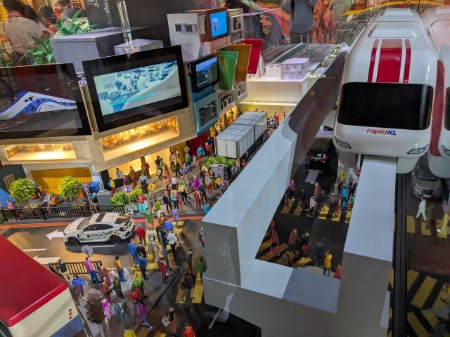中心に置かれているのは都市エリアのジオラマ。モノレールや大きなサイネージで発展するまちをアピール。