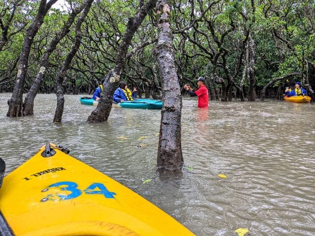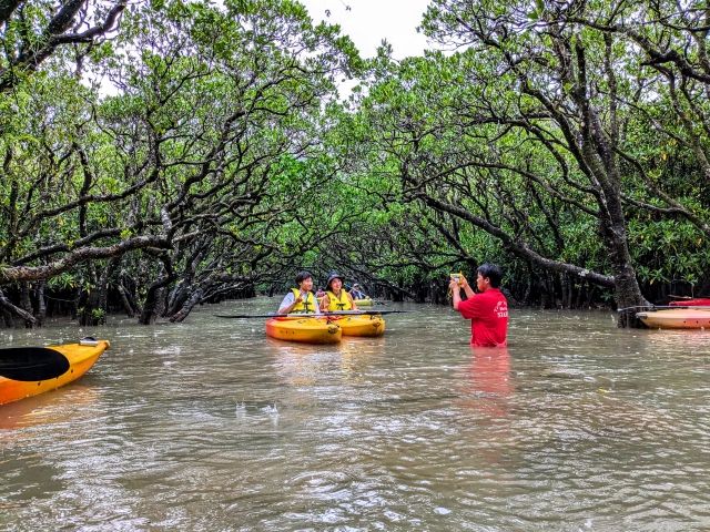 ちなみに、マングローブのトンネルに入れるのは満潮時のみ。一方、干潮時は上陸して生き物観察が楽しめるというメリットも。お目当てがある方は、潮見表を確認してからカヌー体験時間を決めるのがおすすめです。