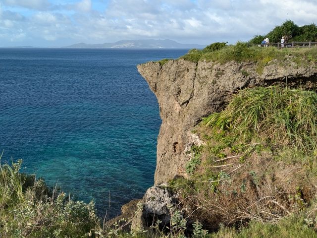 すぐに見えてくるのはゾウの鼻のような不思議な岩。琉球石灰岩による断崖絶壁で、その高さは約20mほど。これぞ万座毛をただの岬ではない、万座毛たらしめる独特な景観です。