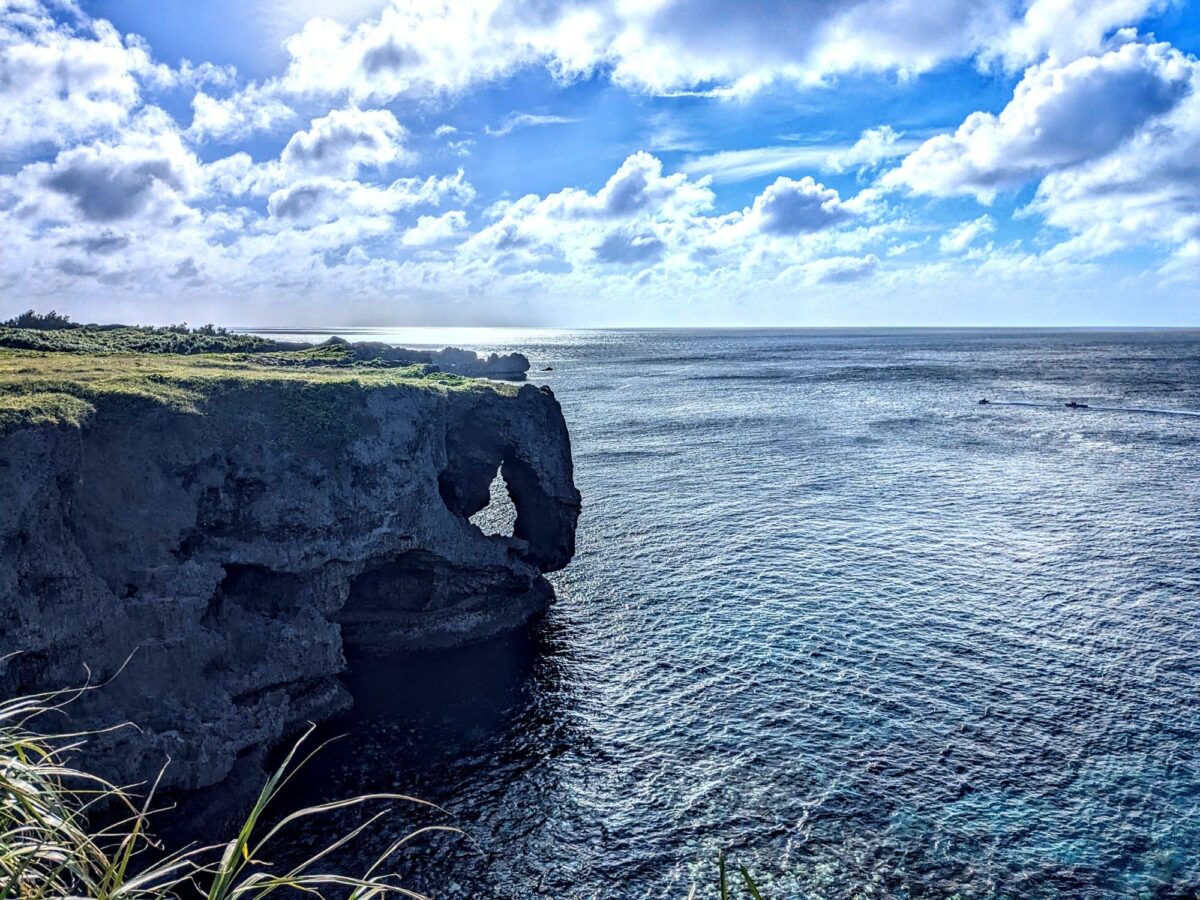 沖縄を代表する観光スポット万座毛。象の鼻のような奇岩があることで知られる景勝地です。