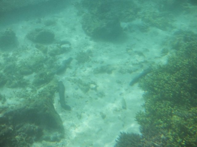 海底にはナマコもたくさん!一瞬で写真に撮れなかったのですが、海底をうねるウツボの姿も見ることができました。