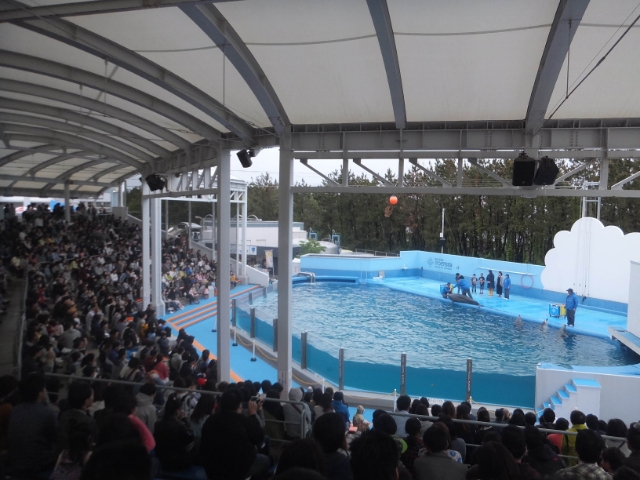 ドルフィンスタジアムでは、イルカショーも開催。ハンドウイルカ、カマイルカがアクティブに飛び回ります。