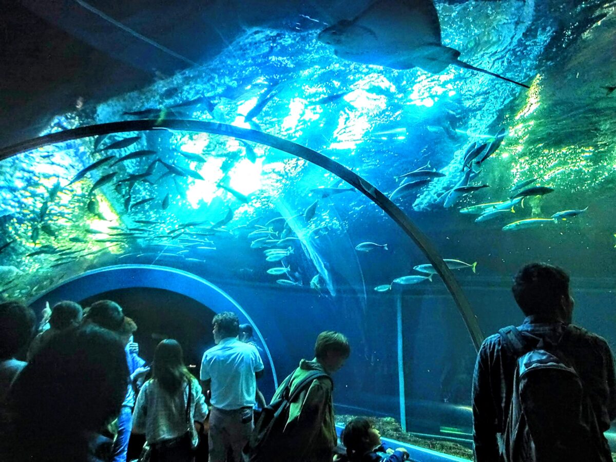 トンネルになっているため、海中散歩気分を楽しめます。この大水槽では平日・土曜は1日1回、日祝は1日2回ほど解説が行われています。