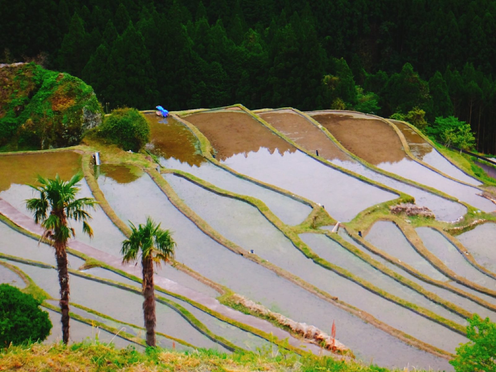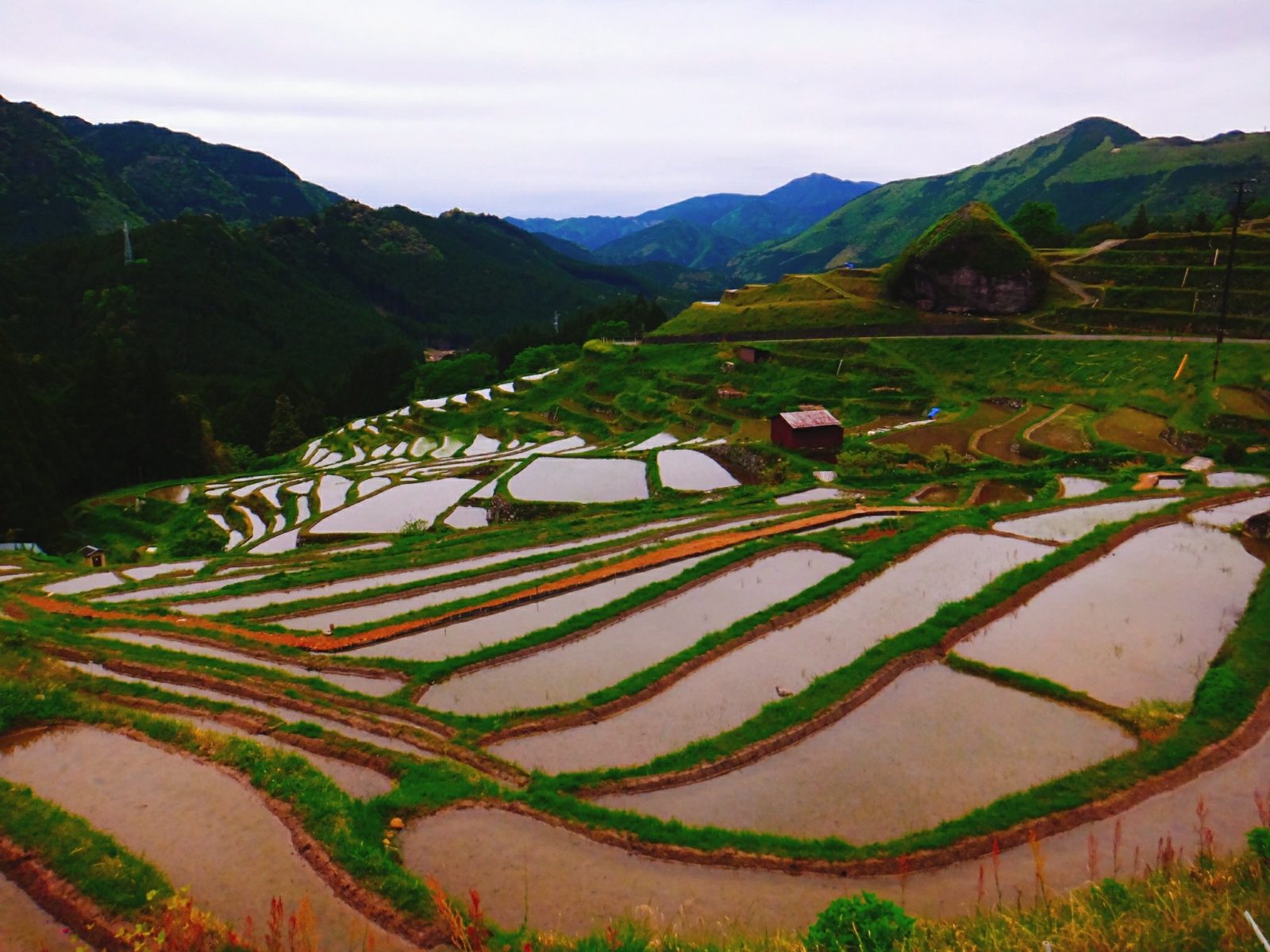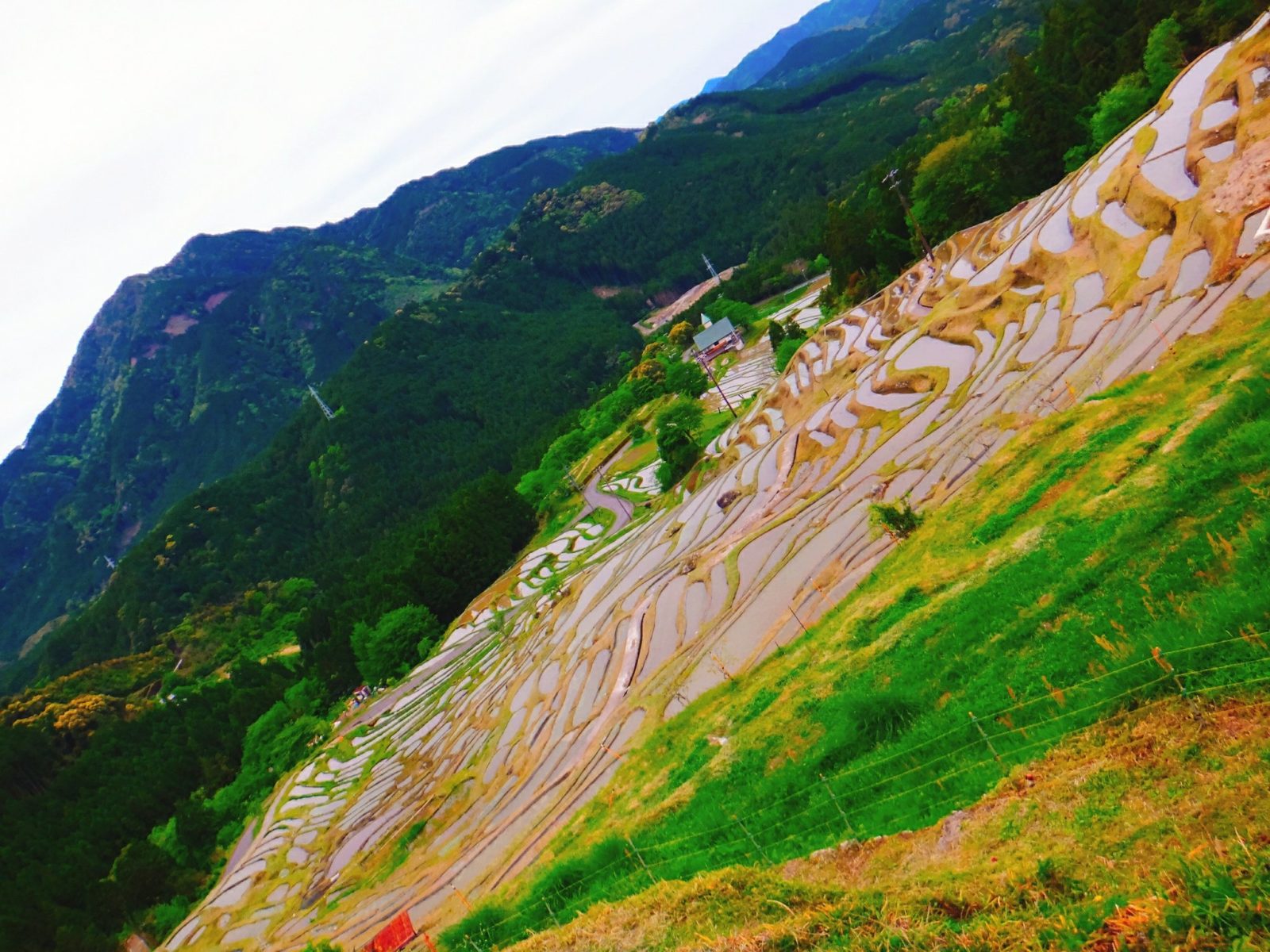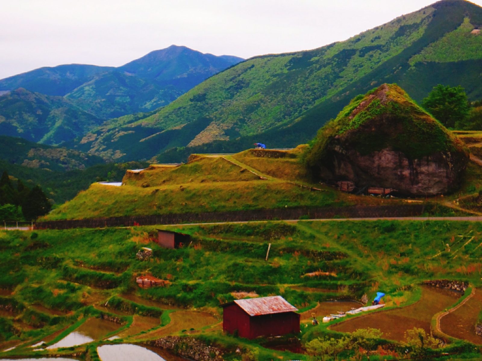 ぐにゃぐにゃとした棚田を眺めていると、なんだか時空が歪んだような気持ちにもさせてくれます。