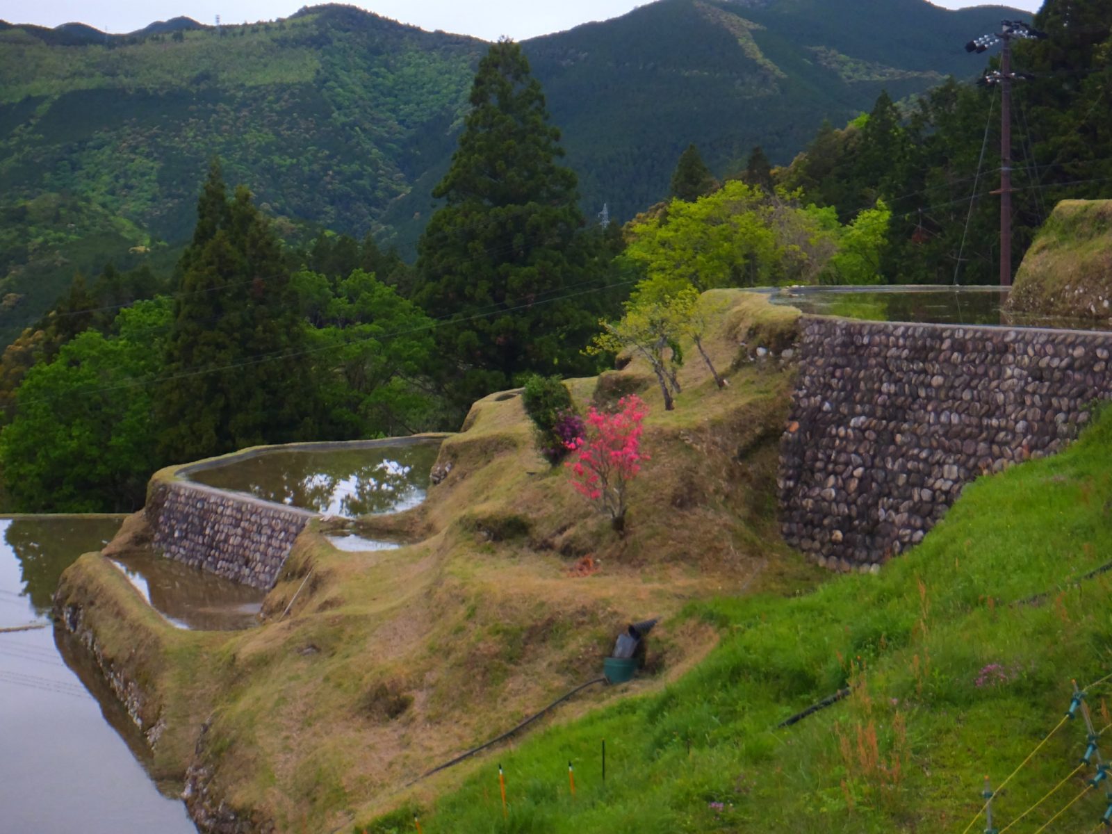 熊野にある丸山千枚田は、文字通り千枚を越える田んぼが並ぶ日本屈指の巨大な棚田。 斜面に無数に連なる田んぼは圧巻です。季節によって姿を変える棚田ですが、4月末は水が張られており、まるで鏡のように空を映していました。