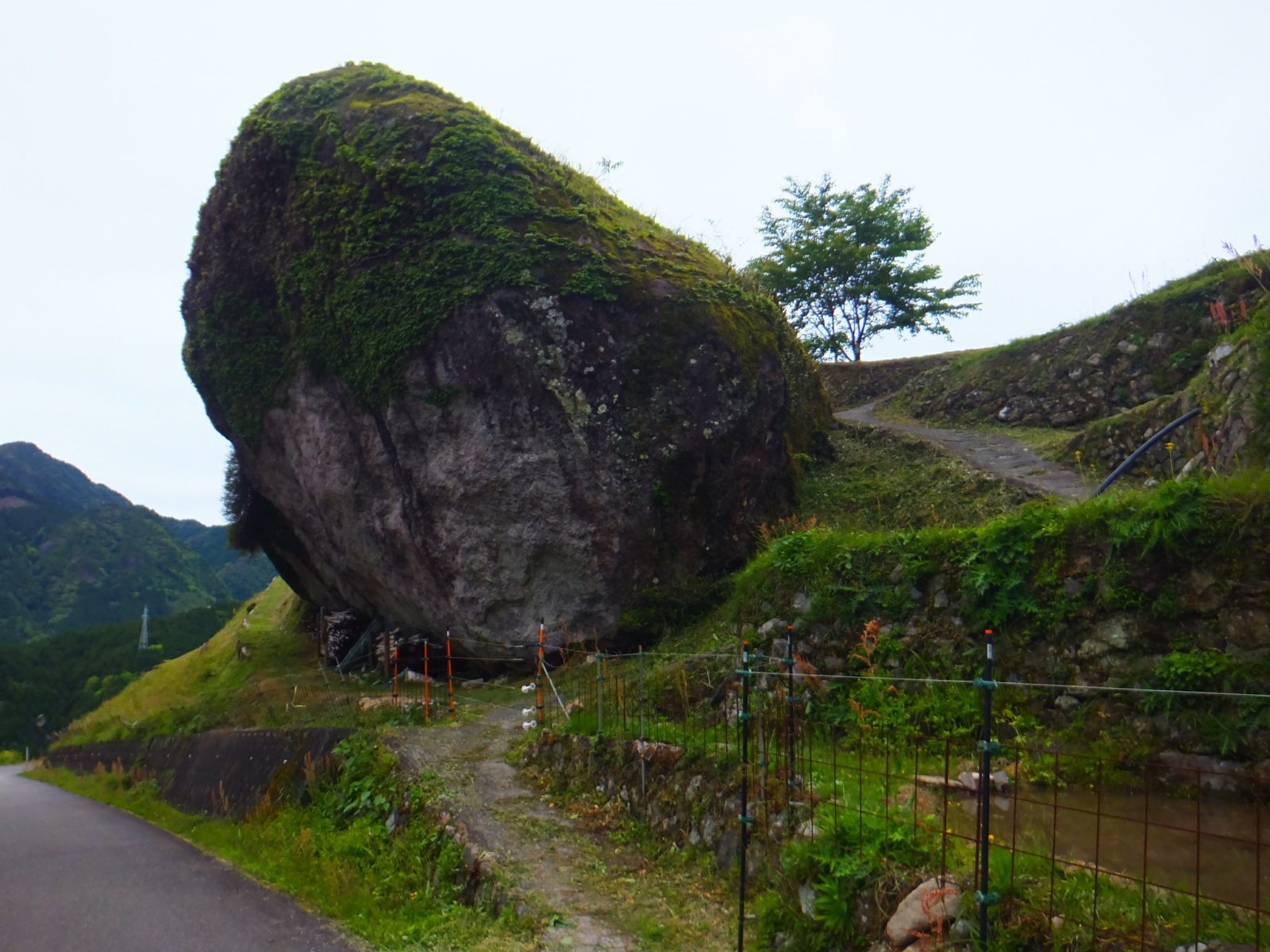 上ってくるときは全く気がつかなかったのですが、田んぼの真ん中には巨大な岩!