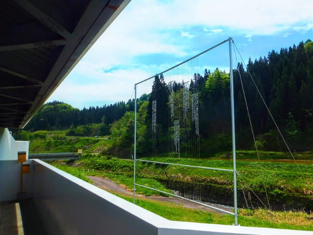 大地の芸術祭の作品は、車が無いと行きにくい山中にあるケースが多いです。しかし、こちらは北越急行ほくほく線まつだい駅のすぐ目の前。電車で来た方にもアクセスしやすいスポットです。