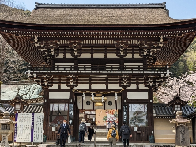 境内の入口となるのが江戸時代初期の作といわれる楼門。高さ11mにも及ぶ重厚な姿で参拝者を出迎えます。