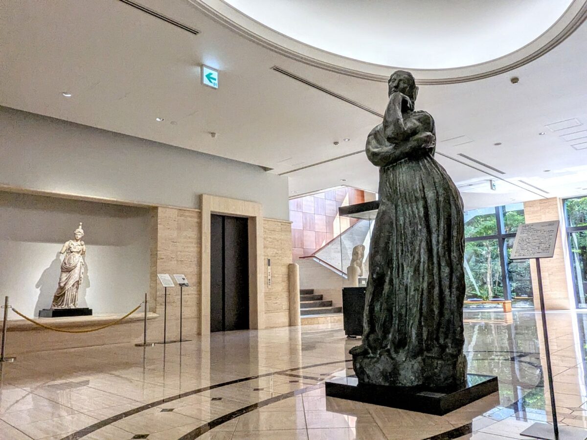 来館者を出迎えるのはエミール=アントワーヌ・ブールデル《ペネロープ》。トロイア戦争にてギリシャを勝利に導いた英雄オデュッセウスの妻をテーマにした作品です。腕を組み、あごに当てたポーズは悩ましく、何かを憂いているような佇まい。