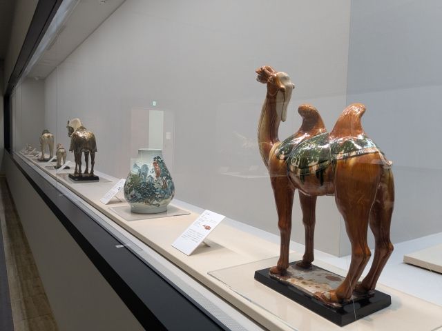 色鮮やかなラクダやウマ。中国・唐の時代に作られた陶器の動物たち。デフォルメされることなくリアルな姿は、骨格や筋肉を理解した上で制作されていることが見て取れます。
