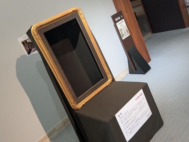 館内にあった不思議なフォトスポット。金色の額の中に入って、絵画のような写真を撮ることができます。タイトルは「ヒト」!!この自分が展示されちゃう演出もまた、動物園っぽいですね!