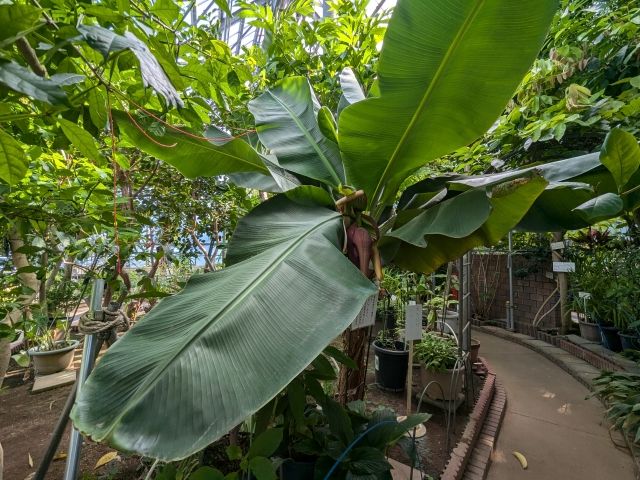 こちらはサンジャクバナナ。1mはあるかという巨大な葉がインパクト抜群ですが、バナナの中では小型種であるそう。