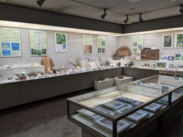 駐車場の傍らには薬事資料館が立っており、こちらも園内同様自由に見学可能。独特の香りが立ち込める展示室。薬用植物園四季を映し出した映像がエンドレスで流れています。