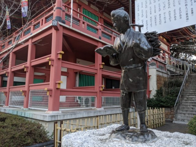 広い境内に様々な見どころが詰まっている目黒不動。中でも目に付くのは石像・銅像の多さ。仏像や人物像など、実に様々な像があちこちに置かれています。
