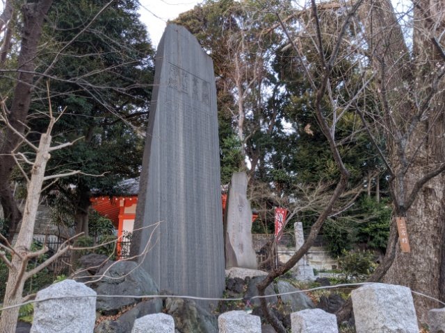 境内にはもちろん石像もあります。サツマイモを手に持った姿が、少しかわいらしい。大本堂の裏手から不動公園沿いに少し歩くと、そこには青木昆陽の墓所もあります。