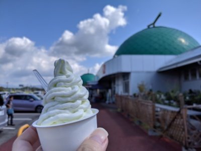大きなメロン型のドームがインパクト抜群な道の駅。内部はメロンのお菓子やジュースなど様々なメロン加工品の目白押し。果肉たっぷりのメロンソフトは絶品です!