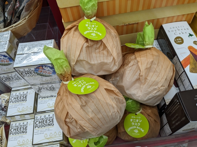 タマネギのカタチをしたパッケージがかわいいオニオンラスク。★★