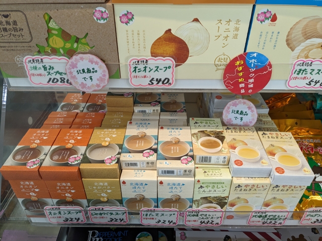 他にも、北見の定番土産である「ハッカ油製品」や、「しじみインサイダー」という株の取引きみたいな名前のドリンク、北見を代表する珍味「ぽん鱈」など様々なラインナップが揃っています。