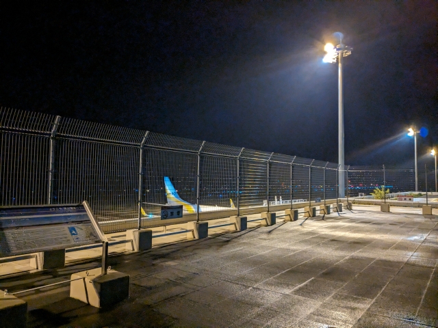 1Fはチケットロビー/到着ロビー、2Fは出発ロビー/搭乗口、3Fは屋上送迎デッキ。送迎デッキからは天都山、海別岳、斜里岳、藻琴山、雄阿寒岳といった山々が連なる広大な景色を見ることができるそう。・・・夜なので真っ暗でした!