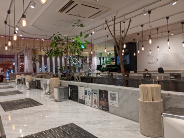 新宿駅の南口から直通なので、雨が降っても濡れることなくたどりつけます。同フロアには「太陽のトマト麺」や「洋麺屋 五右衛門」というおしゃれヌードルチェーン店も並んでいます。