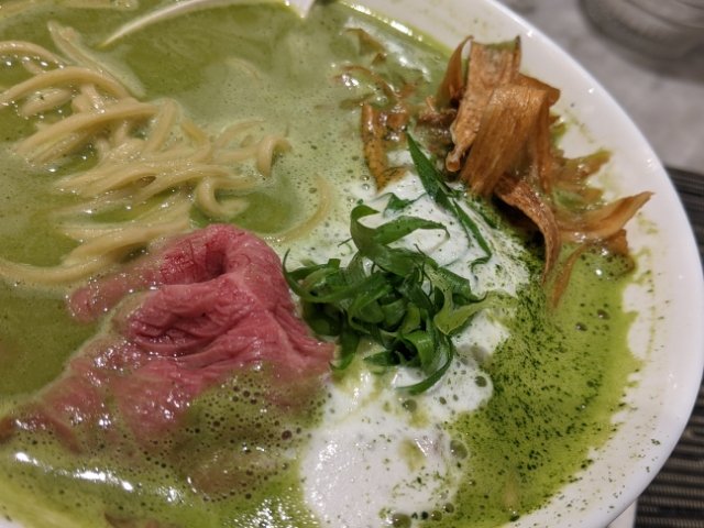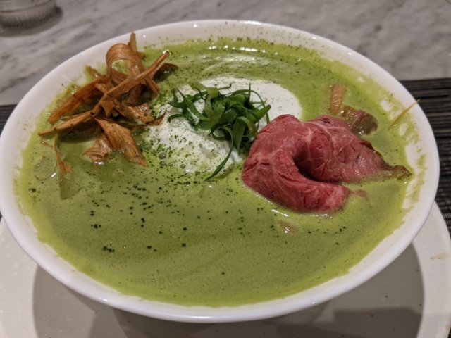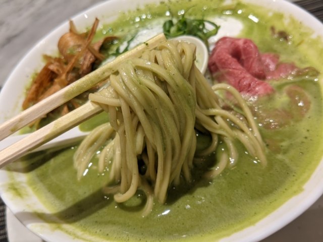 緑色のラーメンを実食