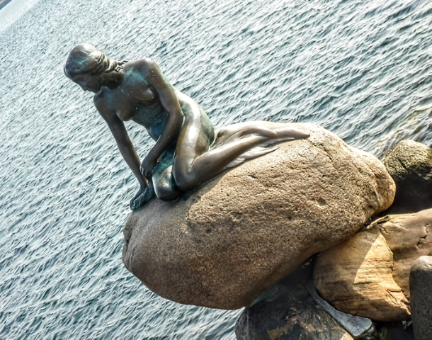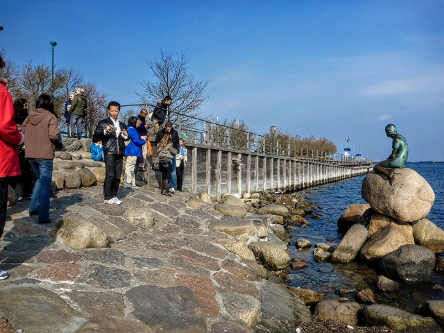 デンマークの首都、コペンハーゲン。かつて存在した星型の要塞カステレットの近くの海辺には人魚姫の像が設置されています。
