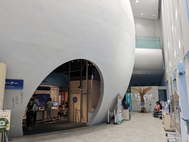 1階の受付の先にあるのは巨大な球体。この中が「みなと科学館」の展示室となっています。